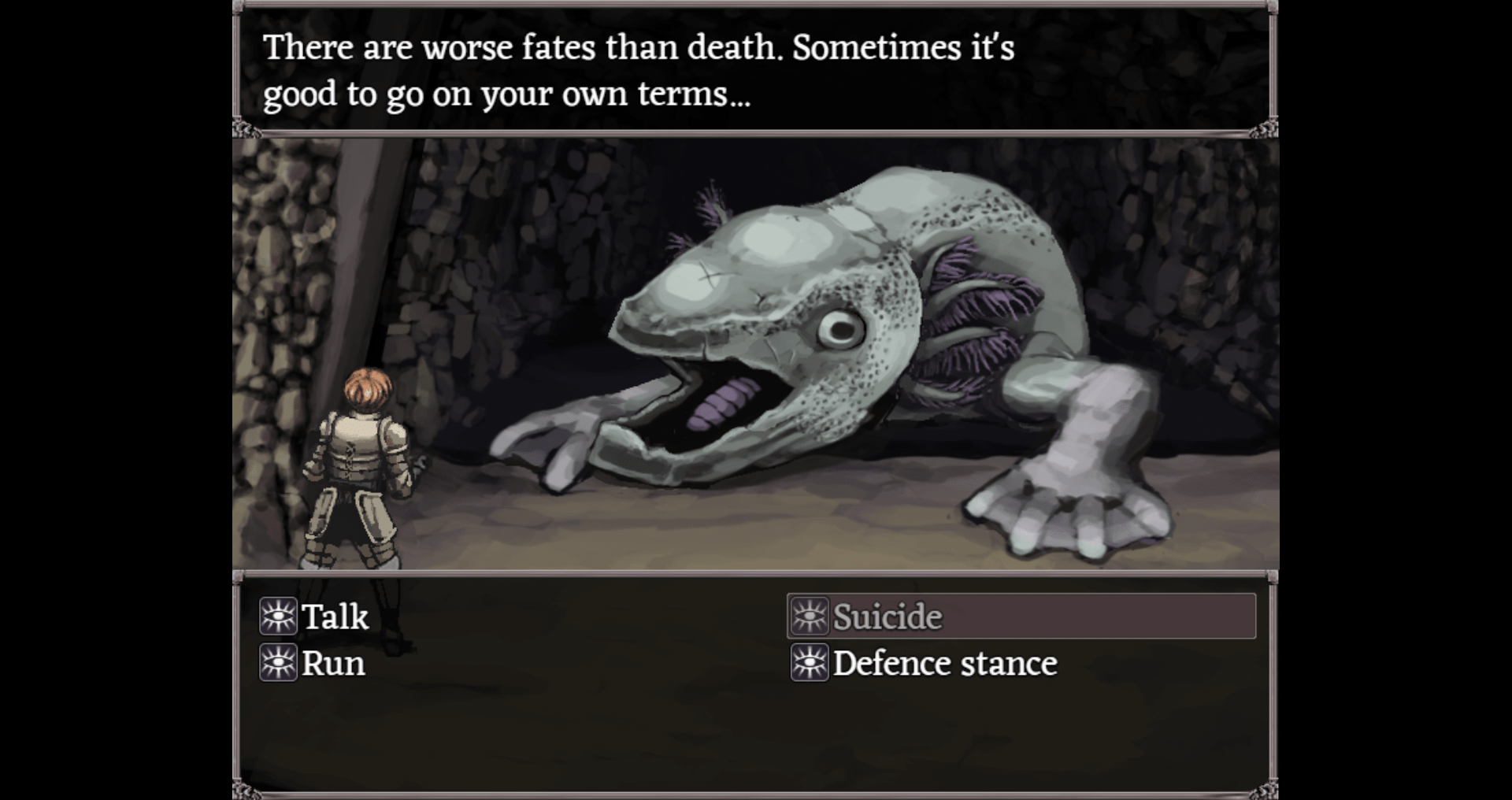 No te frustres si sientes que no puedes avanzar en tu aventura en los calabozos de Fear & Hunger, ya que su dificultad es exagerada a propósito. El juego es una campaña de prueba y error, donde morirás muchas veces antes de lograr terminar el juego y conseguir uno de sus varios finales.