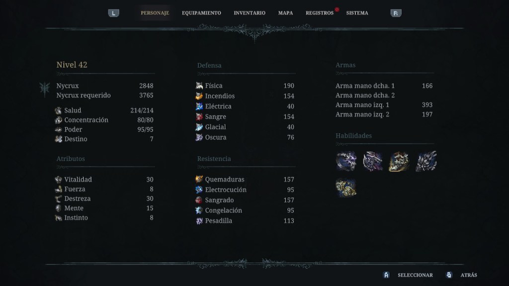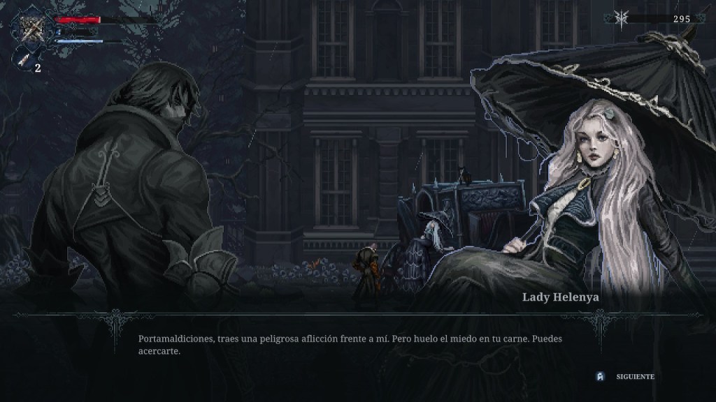 Lady Helenya es uno de los personajes más importantes del juego, ya que tendrás que acudir a ella cuando desees subir nivel. Para esto tendrás que acumular «puntos de experiencia» o Nycrux que los enemigos y jefes te otorgarán al derrotarlos. Este sistema de puntos y aumento de nivel funciona al más puro estilo de los Souls, donde si mueres tus puntos quedarán como una marca en el escenario y tendrás que regresar por ellos sin volver a morir, de lo contrario los perderás permanentemente.